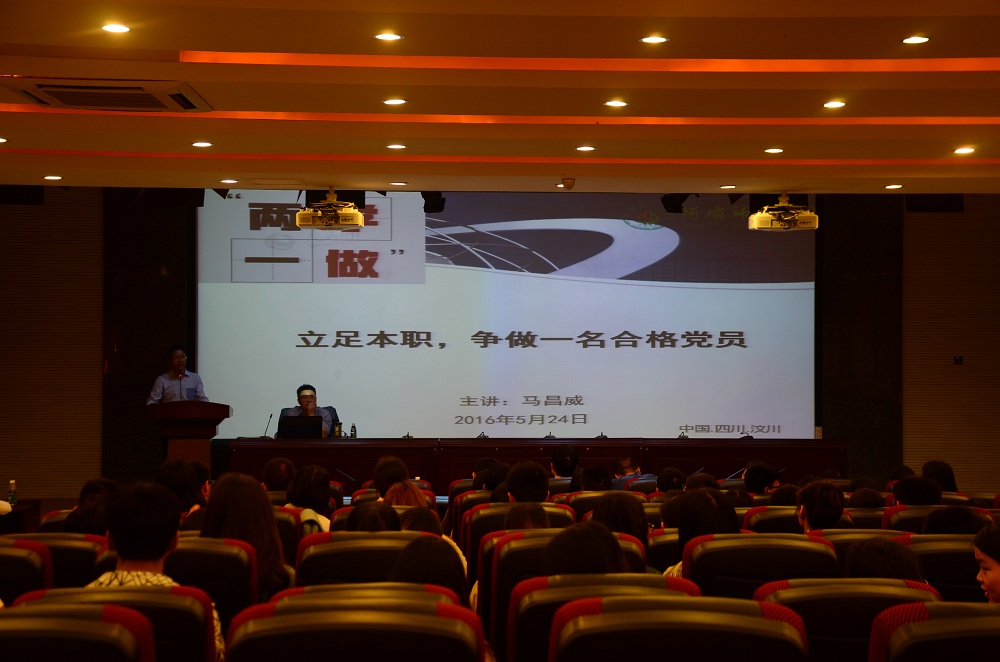 【本网讯】5月24日晚上,分管数学与财经系和计算机科学系的学校行政负责人马昌威副教授,在学校学术报告厅给两系的党员教师、学生党员与入党积极分子,做了题为“立足本职,争做一名合格党员”的党课宣讲活动,与在座的各位师生交流、分享了自己学党章、学党规、践行“两学一做”的心得。计算机科学系党总支负责人黄成兵副教授主持了党课讲解活动,数学与财经系党总支负责人杨仕椿教授总结了本次党课内容。