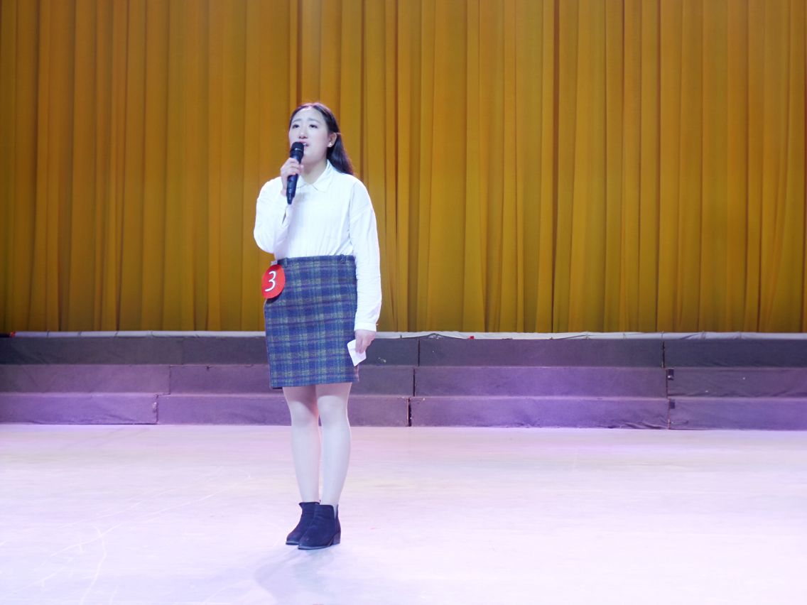 本次比赛分为两个环节,根据比赛两轮综合得分排名产生一、二、三等奖和优秀奖。我系参赛选手索郎王姆她身着白衬衣,气质优雅,温婉大方。在第一轮诗歌朗诵环节,她与观众们分享了一段感人至深的故事。那悦耳动听的声音,真挚充沛的感情将故事娓娓道来,传递出“人间有真情,人间有真爱”的正能量。在第二轮模拟主持环节中,索拉王姆冷静沉着,不负众望,为观众呈现出了一段精彩的新闻播报。她普通话流利顺畅,语言表达清楚明了,台风成熟老练。最终,王姆以9.06分的成绩获得优秀奖。
