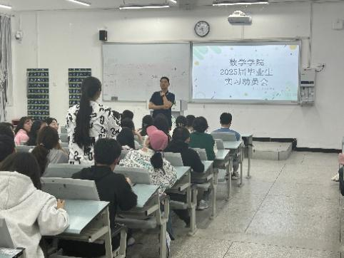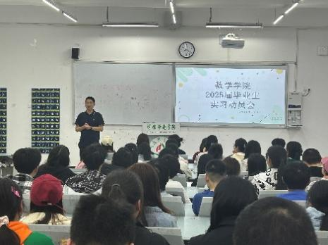 【本网讯】2024年5月9日20:10,数学学院于树人楼C102开展2025届毕业生实习动员大会。参加此次会议的有数学学院团委书记金玉洁老师、团委副书记王全智老师、辅导员曾红老师以及数学学院2025届全体毕业生。会议由王全智老师主持。
