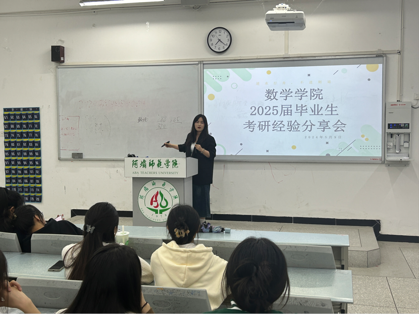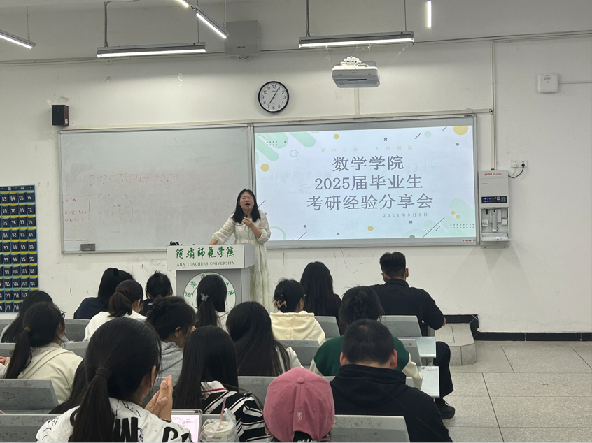 【本网讯】2024年5月9日19:00,数学学院于树人楼C102召开2025届毕业生考研经验分享会。参加分享会的有数学学院团委书记金玉洁老师、团委副书记王全智老师、辅导员曾红老师,我院2021级全体学生和往届优秀毕业生。分享会由曾红老师主持。
