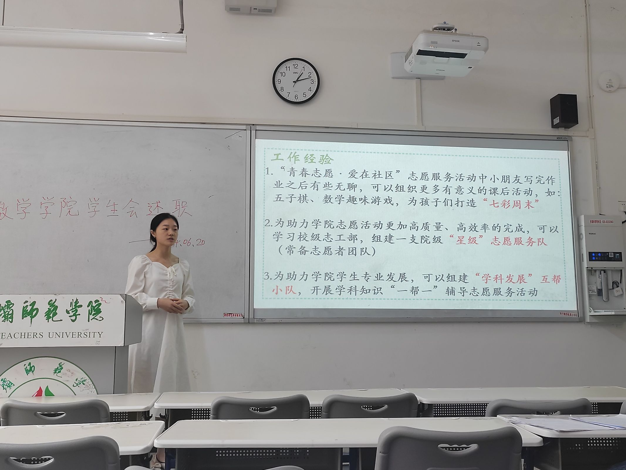 【本网讯】为秉持“全心全意为人民服务”的宗旨,进一步加强我院学生会自身建设,增强学生干部自我教育、自我管理、自我服务、自我监督的意识,提高学生会干部队伍的整体素质,2024年6月20日12:40数学学院于树人楼F102举办了学生会干部述职大会。参加此次大会的有数学学院团委书记金玉洁老师、团委副书记王全智老师、辅导员曾红老师以及学生会全体成员。大会由主席团成员左诗涵主持。
