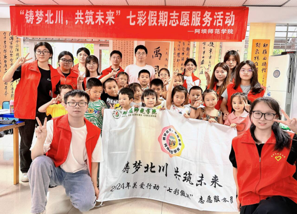 【本网讯】为丰富社区少年儿童的暑期生活,拓宽青年志愿服务载体,关爱青少年儿童的身心健康。2024年7月16日,阿坝师范学院数学学院“铸梦北川,共筑未来”志愿服务队于绵阳市北川县永昌镇尔玛社区开展2024年“七彩假期”暑假社会实践活动第七天。