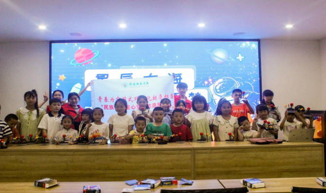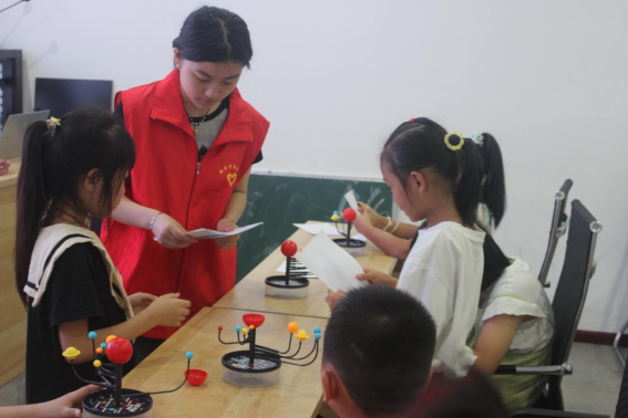 开班仪式上,孩子们的热情与纯真感染了志愿服务队成员。团队负责人表示,本次活动将打造一个充实、快乐、有意义的假期体验。在破冰小游戏之后,团队开展了“星辰大海,航天逐梦”科普活动,志愿者老师带领孩子们探索宇宙奥秘,激发了小朋友的科学兴趣,种下探索未知的种子。在随后的动手实践环节,孩子们亲手制作了纸火箭并成功发射,这也让他们成就感满满,信心倍增。下午课业辅导完成后,进入了手工制作和绘画的课程,孩子们用粘土制作了花朵、小动物等粘土手工制品,同时还用油画棒画出了充满童趣和创意的作品,至此,今日活动圆满结束。