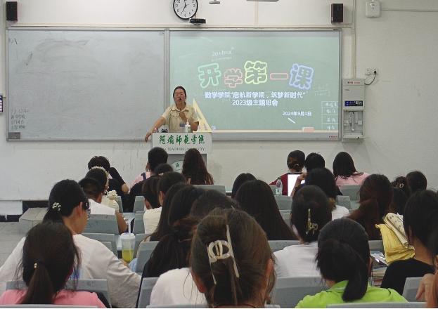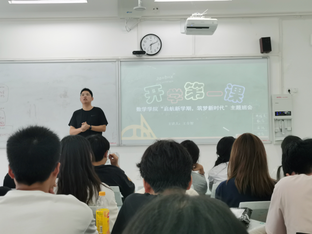【本网讯】为帮助同学们尽快调整状态,以崭新的精神面貌投入新学期的学习生活,营造安全、和谐、稳定、健康的校园生活。2024年9月1日18:00,数学学院于教学楼召开“启航新学期,筑梦新时代”主题班会。参加此次班会的是2021级、2022级、2023级全体同学。班会由我院辅导员金玉洁老师、王全智老师和曾红老师主持。