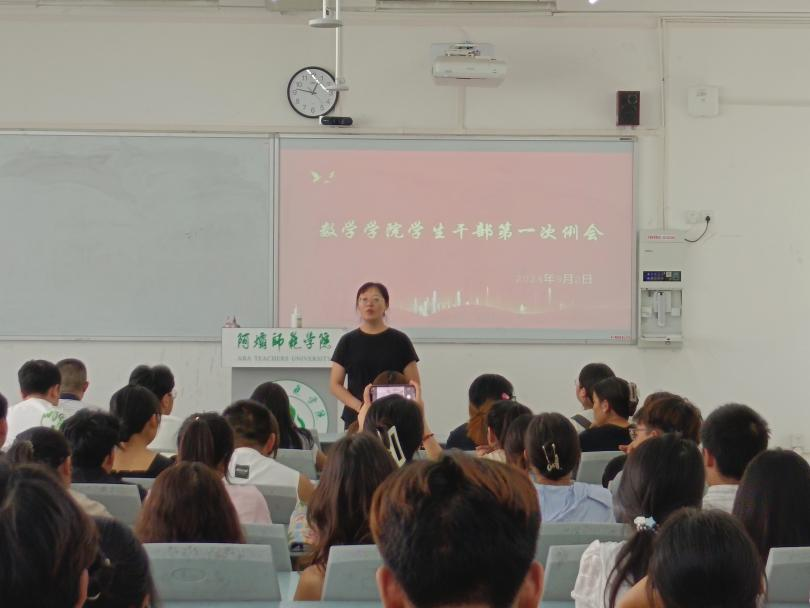【本网讯】为进一步增强学生干部的责任意识,提高学生干部的工作能力和综合素养。2024年9月2日12:40,数学学院于树人楼C202召开第一次学生干部会议,参加此次会议的是数学学院党委书记蒋自国教授、团委书记金玉洁老师、辅导员曾红老师以及我院全体学生干部。会议由团委办公室负责人龙天浩主持。