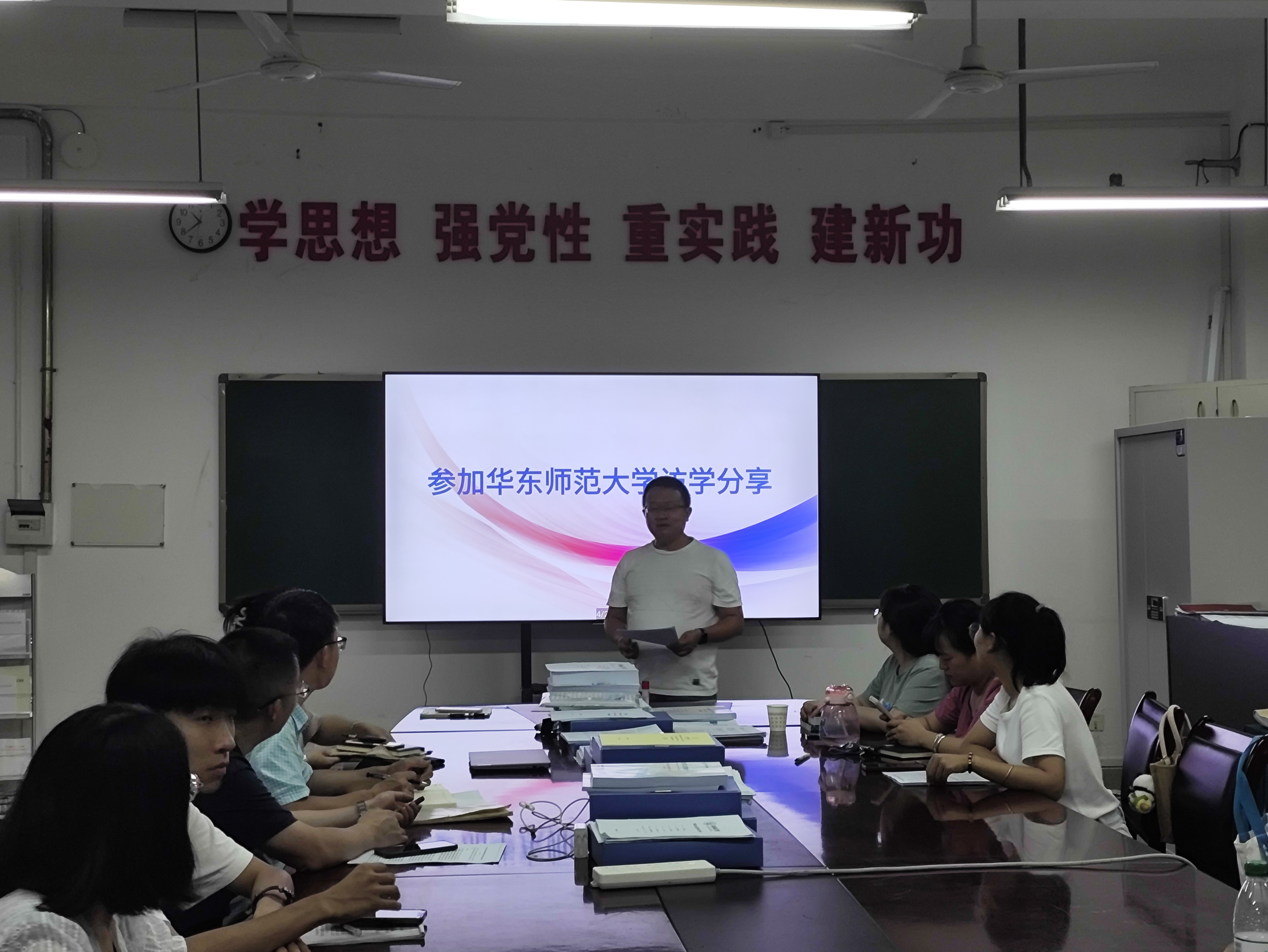 分享会上,参培教师结合当下AI时代高校教师素养提升到数智赋能“金课”建设等学习内容展开分享,本次培训不仅提升了教育教学和科研能力,提高了专业素养和创新精神。蒲永燕博士围绕访学目标、学习研究情况、访学收获等方面分享了一年来在华东师范大学访学的感悟和收获。老师们表示将所学所获贯穿在日常的教学工作中,充分发挥骨干教师带头作用,紧密联系人工智能提高教学效果,为个人发展和阿坝师范学院教育质量提升做出更大的贡献。