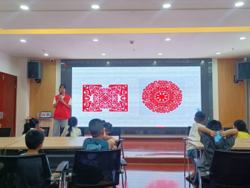 巧手剪纸话非遗,藏羌风韵润童心。藏羌剪纸是阿坝州理县的传统技艺,属于省级非物质文化遗产。志愿者张诗彤结合藏、羌少数民族文化,阐述了藏羌剪纸的来源和发展。理县藏羌剪纸源于祭祀祈福的仪式,每到新年,便在家里神龛上换上新的剪纸,祈愿人畜平安、五谷丰登。1752年以后,理县地区改土归流设屯兵制,藏羌汉多元文化融合并进,当地群众出于祈求出征将士平安的美好祝愿,延续了在神龛更换剪纸的习俗,剪纸作为一门独特的技艺开始盛行并传承至今。
