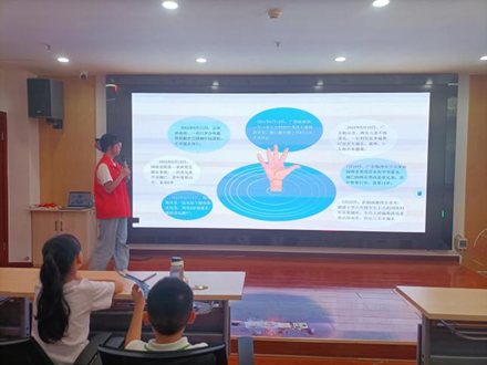 【图一】志愿者讲解溺水自救方法活动现场