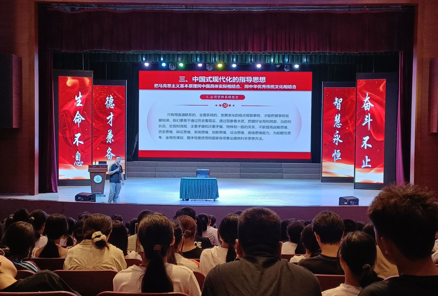 课堂上,蒋书记重点讲述了党的二十大主题,然后分别从中国式现代化的科学内涵、实践基础、指导思想、基本特点、本质要求和基本原则、战略任务、战略保障、时代要求等八个方面,向2024级的新生们详细地讲解中国式现代化的具体内容,并提出了具体要求,同时强调了作为新时代的青年学子,应当坚定自身的理想信念和奋斗目标,争做新时代的奋斗者、引领者、奉献者。