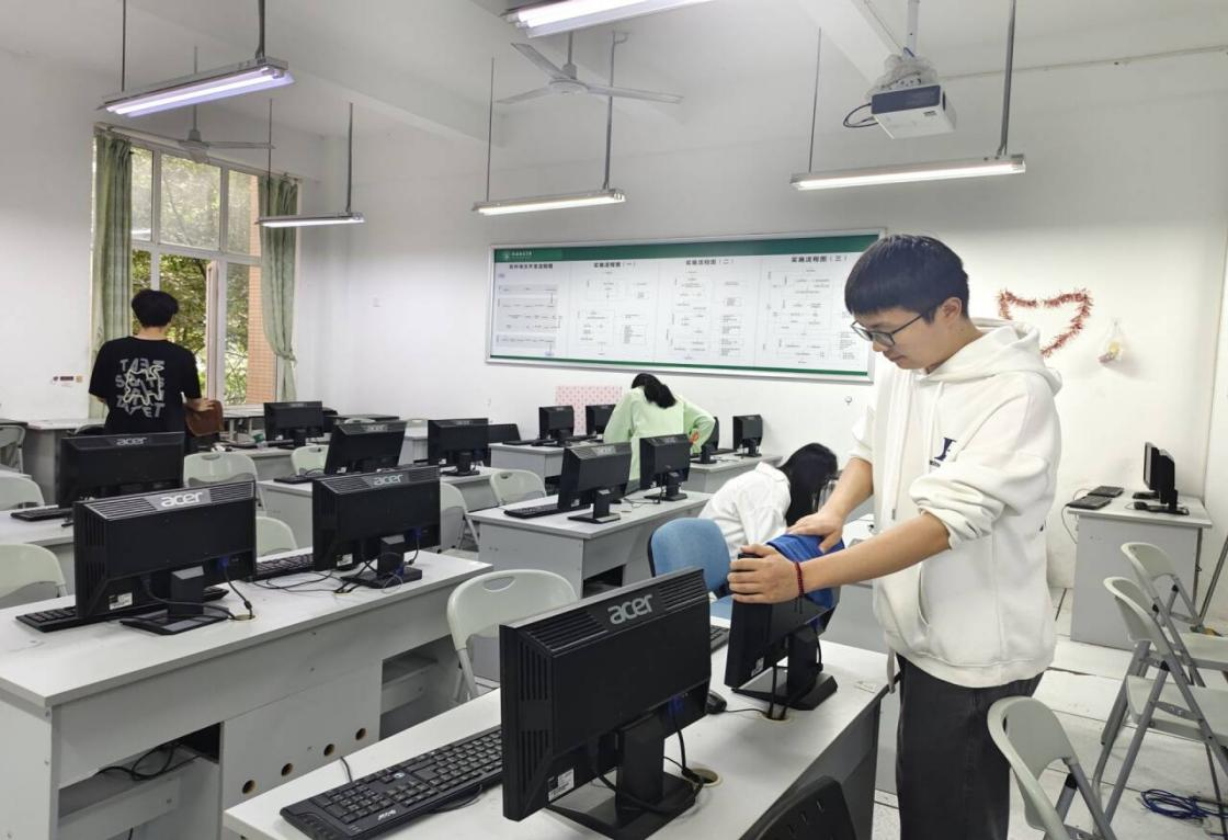 此次活动的核心任务是整理实验室内的电脑设备,确保每一台电脑与其对应的主机匹配,并按规定顺序摆放整齐。活动现场,志愿者们分工明确,并按照编号逐一进行配对。除了整理电脑设备,志愿者们细心地为每一台电脑插上电源线,确保它们能够正常使用。并且对部分已经报废或无法使用的电脑设备进行专门的分类处理。随后,志愿者用抹布仔细擦拭电脑表面和主机箱,清除灰尘和污渍。此外,志愿者们还对实验室进行全面的清扫,确保每一个角落都干净整洁。