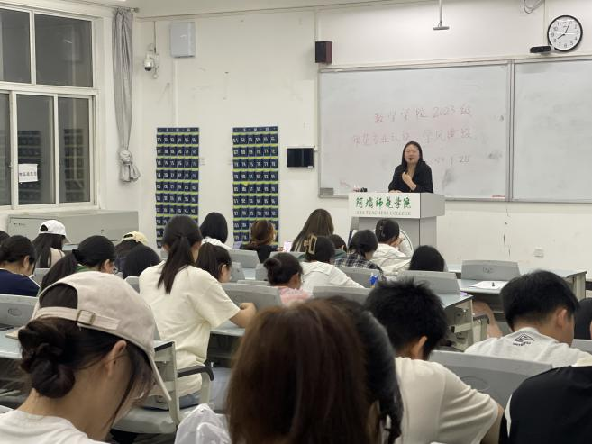 【本网讯】为了深入剖析师范专业认证的要求,助力学生未来职业的发展。2024年9月28日19:00,数学学院2023级数学与应用数学三班于树人楼C203教室开展了师范类专业认证基础知识主题班会。参加此次班会的有2023级数学与应用数学三班的全体同学,此次班会由辅导员曾红老师主持。