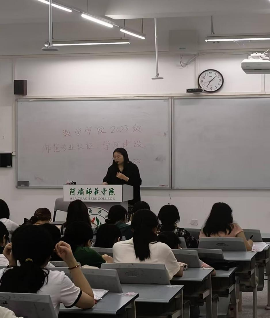 【本网讯】为进一步增强师范生的专业知识和技能,提高教育教学质量,2024年9月28日19:00,数学学院2023级数学与应用数学一班于树人楼C203开展师范类专业认证基础知识学习主题班会,参加此班会的有2023级数应一班全体同学,会议由辅导员曾红老师主持。
