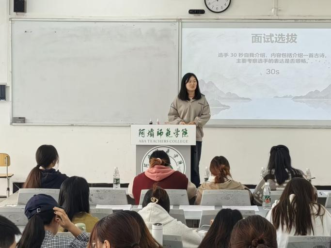 【本网讯】为增强学生对传统诗词文化的浓厚兴趣,领悟中华优秀文化内涵,激发学生文化自信自强。2024年10月10日12:40,数学学院于树人楼C101举办“2025中国诗词大会”院级选拔赛。主席团三位成员担任此次比赛的评委,参加比赛的是数学学院部分学生代表。比赛由朱玉霜主持。
