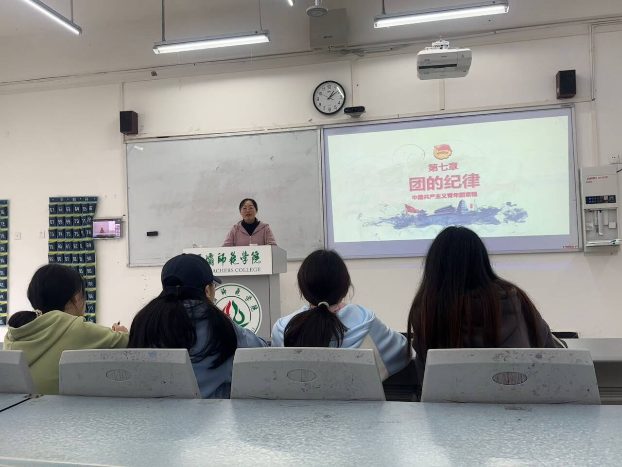 金老师详细解读了团的纪律处分的种类、程序以及执行标准。她通过实际案例分析,让新团员们深刻理解到纪律的重要性以及违反纪律可能带来的严重后果。此外,金老师还强调了团员在日常生活中应如何自觉遵守团纪团规,以及如何在遇到问题时寻求正确的解决途径。