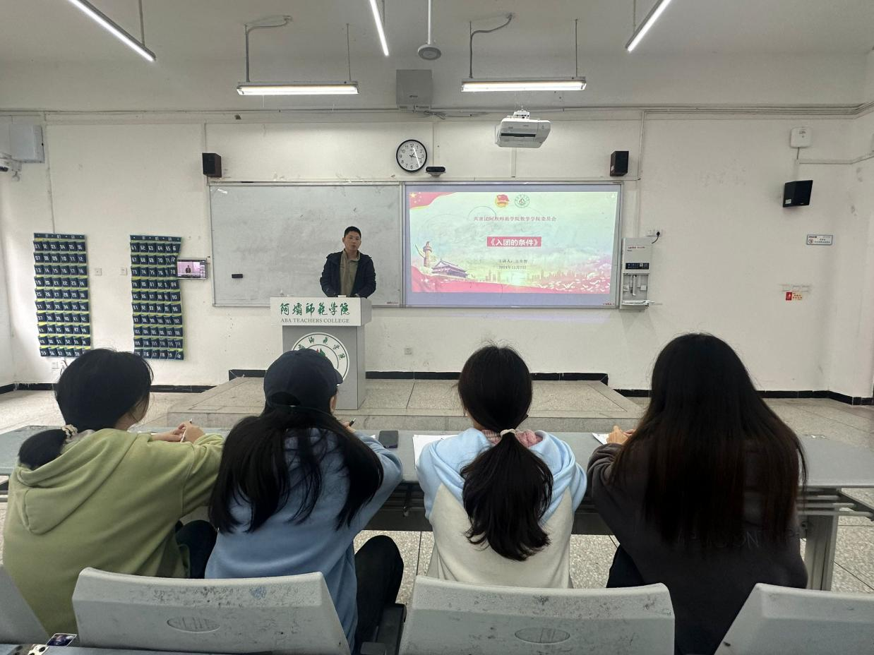 【本网讯】2024年11月8日13:20,数学学院于树人楼C101开展2024年发展新团员主题团课培训第七讲——入团的条件,本次团课的主讲人是我院团委副书记王全智老师,参加本次团课活动的是我院2024年新入团的团员以及组织部的工作人员。