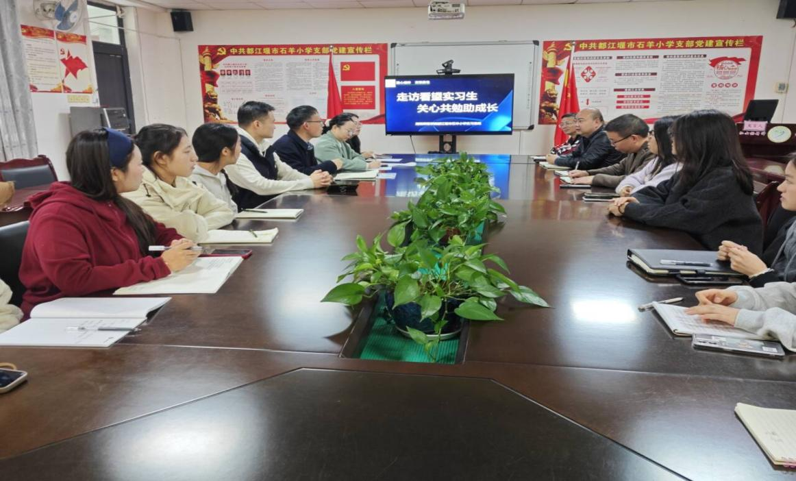 【图四】工作组一行在都江堰市石羊小学开展实习座谈