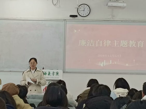 【本网讯】为扎实推进廉政教育,增强入党积极分子的廉洁自律意识。2024年11月22日12:40,数学学院于树人楼C103开展廉洁自律教育主题党日活动。参加此次活动的是我院全体入党积极分子,活动由数学学院第二党支部书记金玉洁老师主持。