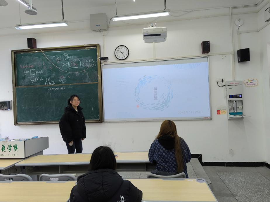 【本网讯】为提高宣传委员新闻稿写作水平,加强学院新闻宣传队伍建设,2024年11月24日10:00,数学学院于树人楼D203开展2023级新闻稿写作交流活动。我院2023级各班宣传委员参加会议。会议由任婉瑜同学主持。