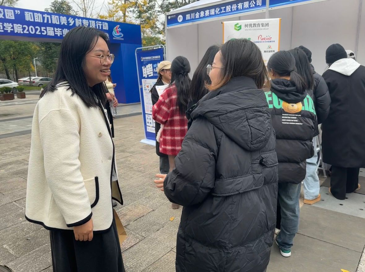 【本网讯】为拓展我校毕业生就业渠道,把握优质就业岗位,进一步推动我校毕业生就业质量。2024年11月26日,阿坝师范学院于成才大道举办2025届毕业生校园双选会,数学学院学生工作办公室副主任金玉洁及就业干事、毕业班班主任曾红到现场走访用人单位。