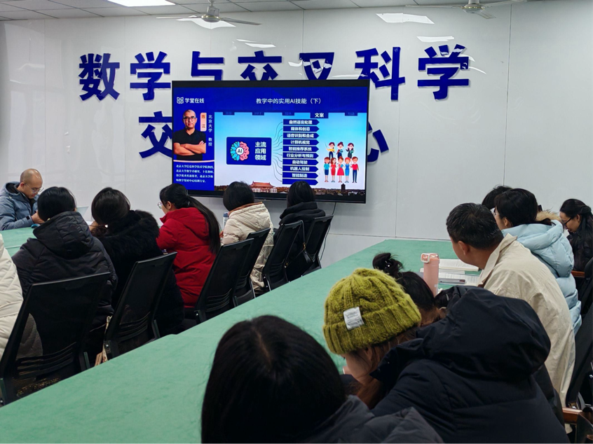 此次培训以观看专业视频资料的形式展开。视频中,教育领域的资深专家深入剖析了AI 技术在教育教学各环节中的应用,从智能辅助教学工具的使用,到基于 AI 的课程设计与优化方法,再到利用 AI 技术开展精准教学评价等内容,全方位展示了 AI 为教育教学带来的变革与机遇。教师们在观看过程中全神贯注,认真记录关键知识点,并就视频中涉及的如何将 AI 技术有效融入数学学科教学、如何利用 AI 优化课程资源以及如何借助 AI 提升学生学习体验等问题展开了讨论。