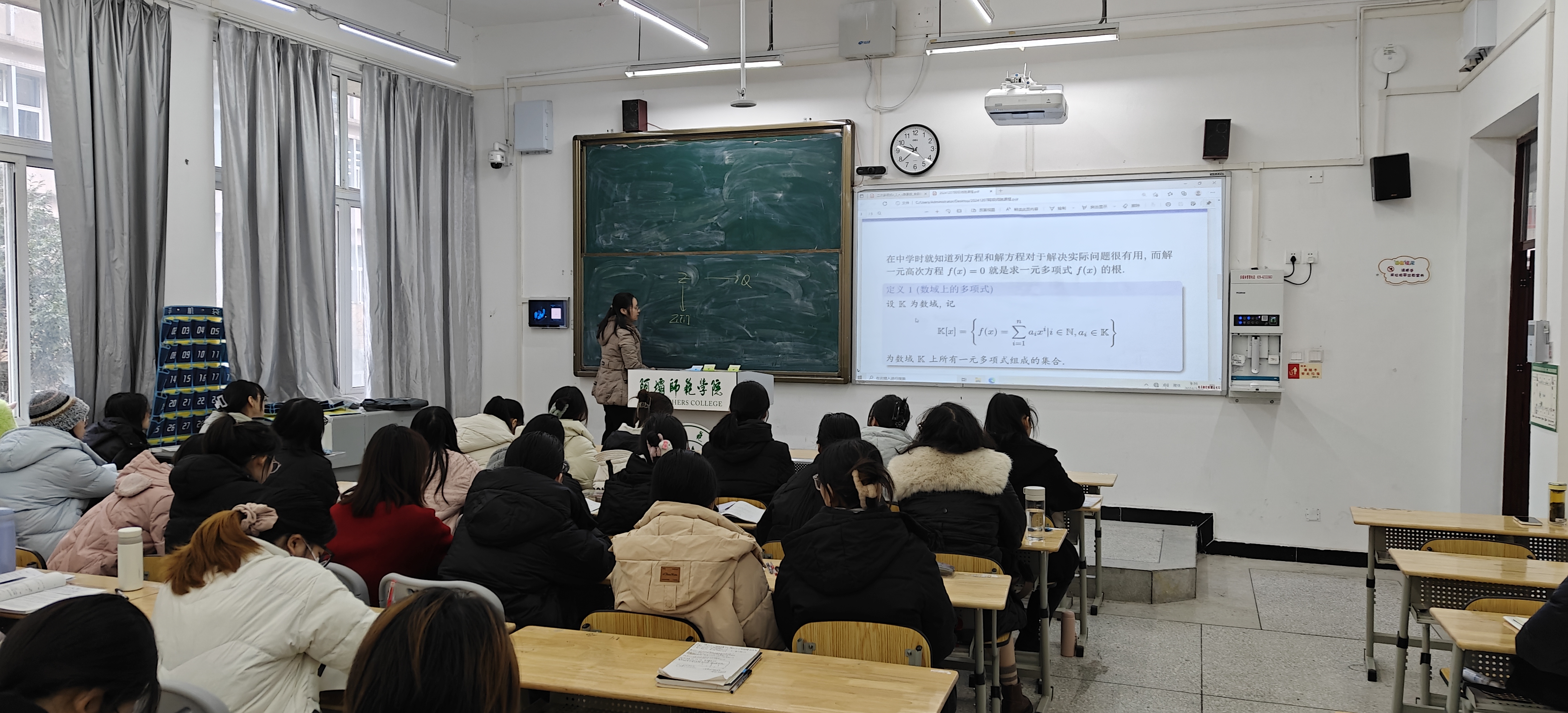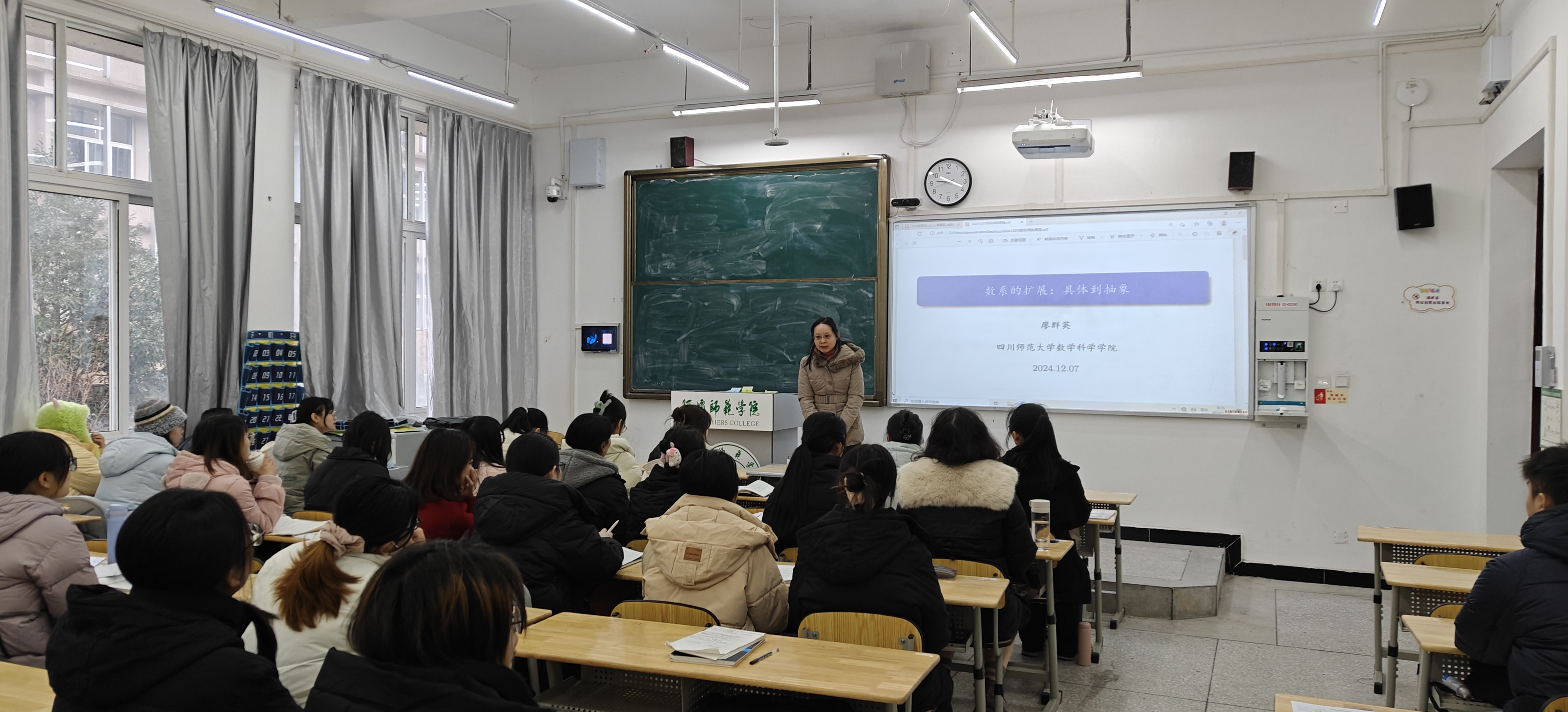 12月6日,廖群英教授为数学与应用数学专业2022级学生讲述题为《数系的扩展-具体到抽象》的专题讲座,从“数系的扩展”、“未知元的引入”、“抽象代数”等多方面,为同学们做了认真细致的讲解。同时,她就学习方法、学习习惯、研究技能,以及师范学生的专业发展和继续深造等问题,与同学们交流和探讨。