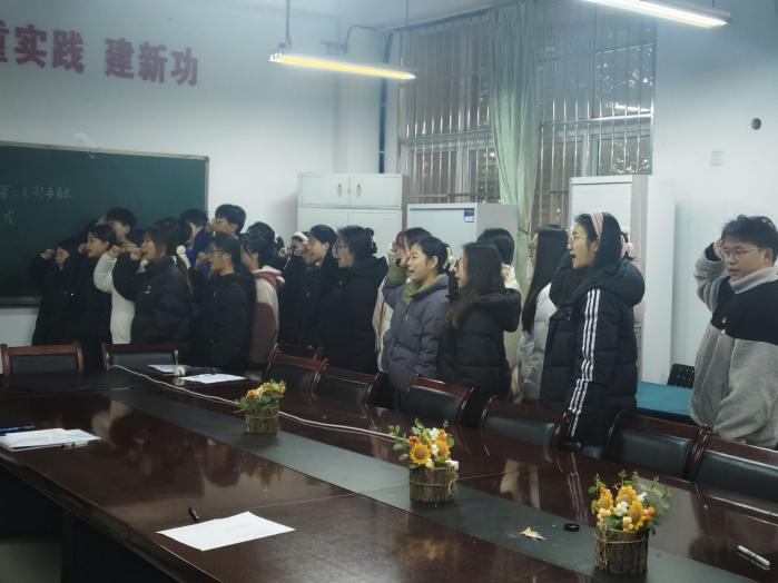 【本网讯】为增强新发展党员荣誉感、使命感,激励老党员永葆初心、砥砺前行。2025年1月8日10:00,数学学院第二党支部于实验楼B113举行新党员入党宣誓暨老党员重温入党誓词仪式。参加此次仪式的是数学学院第二党支部全体人员。仪式由朱俊霖同志主持。