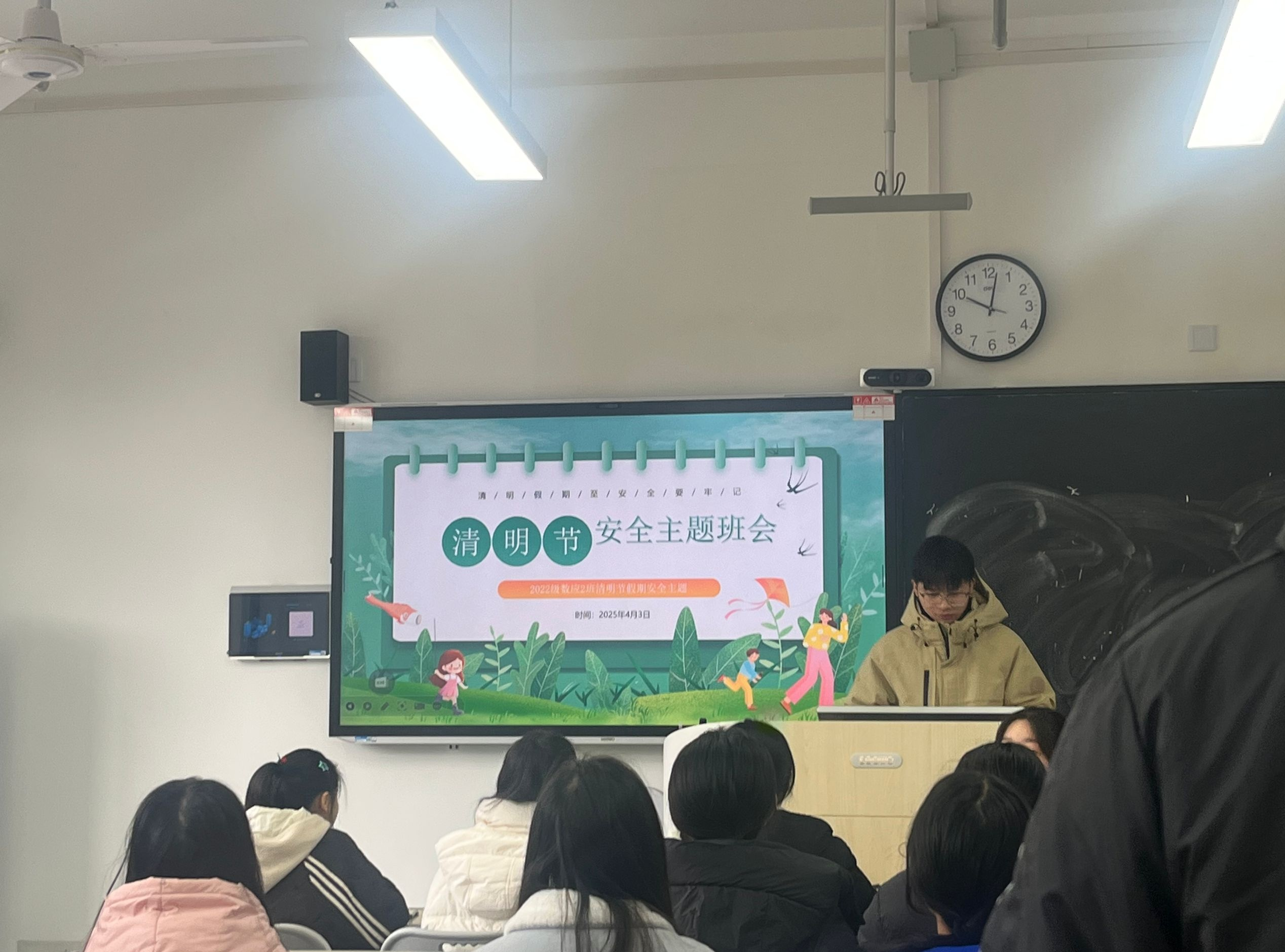 【本网讯】为进一步强化学生清明假期的安全防范意识,提升自我防范能力,切实保障学生生命和财产安全,2025年4月3日,数学学院各班级于教学楼开展清明假期安全主题班会。参加此次主题班会的是我院全体学生。班会由我院各班生活委员主持。