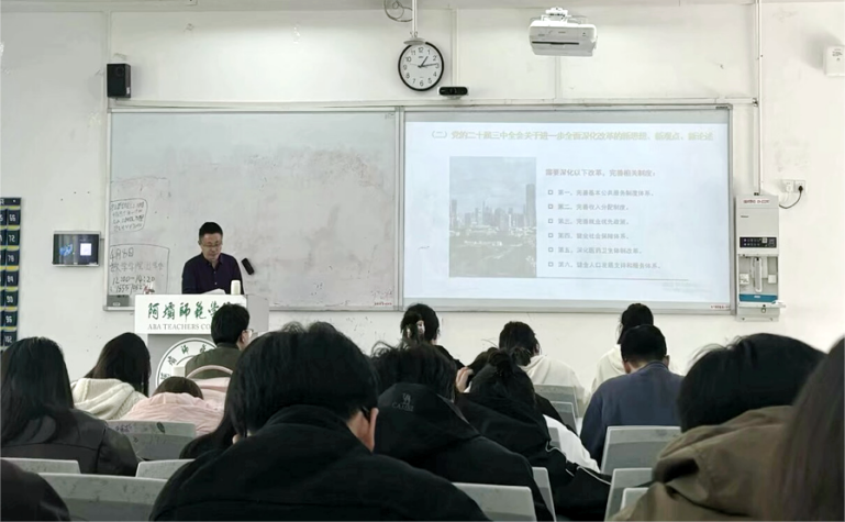 开班仪式结束后,首场专题讲座开始。蒋自国书记以党的二十届三中全会精神为主题深入浅出地阐述了此次会议的重大意义以及主题。他特别指出全面深化改革的具体措施和重要论述的十个方面。他强调这是推进中国式现代化的必然要求,是坚持和完善中国特色社会主义制度、推进国家治理体系和治理能力现代化的需要,也是贯彻新发展理念、更好适应我国社会主要矛盾变化等多方面的需要。
