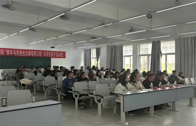 【本网讯】为深入贯彻落实习近平总书记关于青年工作的重要思想,培养信仰坚定、德才兼备、素质优良、能力过硬的青年学生骨干队伍,2025年4月8日12:40,数学学院“青年马克思主义培训工程”大学生骨干培训班开班仪式暨第一讲在树人楼C102举行,我院党委书记蒋自国教授,团委书记金玉洁老师,团委副书记王全智老师以及第二党支部副书记曾红老师出席仪式。我院共50名学员参加此次培训,开班仪式由任婉瑜主持。