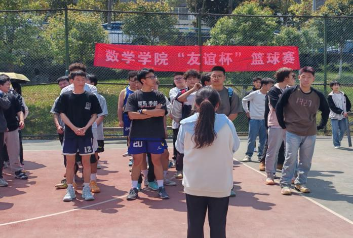 【本网讯】2025年4月9日12:15,数学学院于室外篮球场举行“友谊杯”篮球赛开幕式。参加此次开幕式的有数学学院团委书记金玉洁老师,团委副书记王全智老师以及我院各班篮球队员。开幕式由施钦蓝主持。