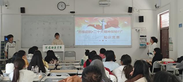【本网讯】为深入学习贯彻党的二十大精神和两会精神,提升学生思维能力与综合素质,2025年4月9日13:00,数学学院在树人楼A202举办“思维启航·二十大精神探秘行”知识竞赛。比赛由徐稚琴主持。