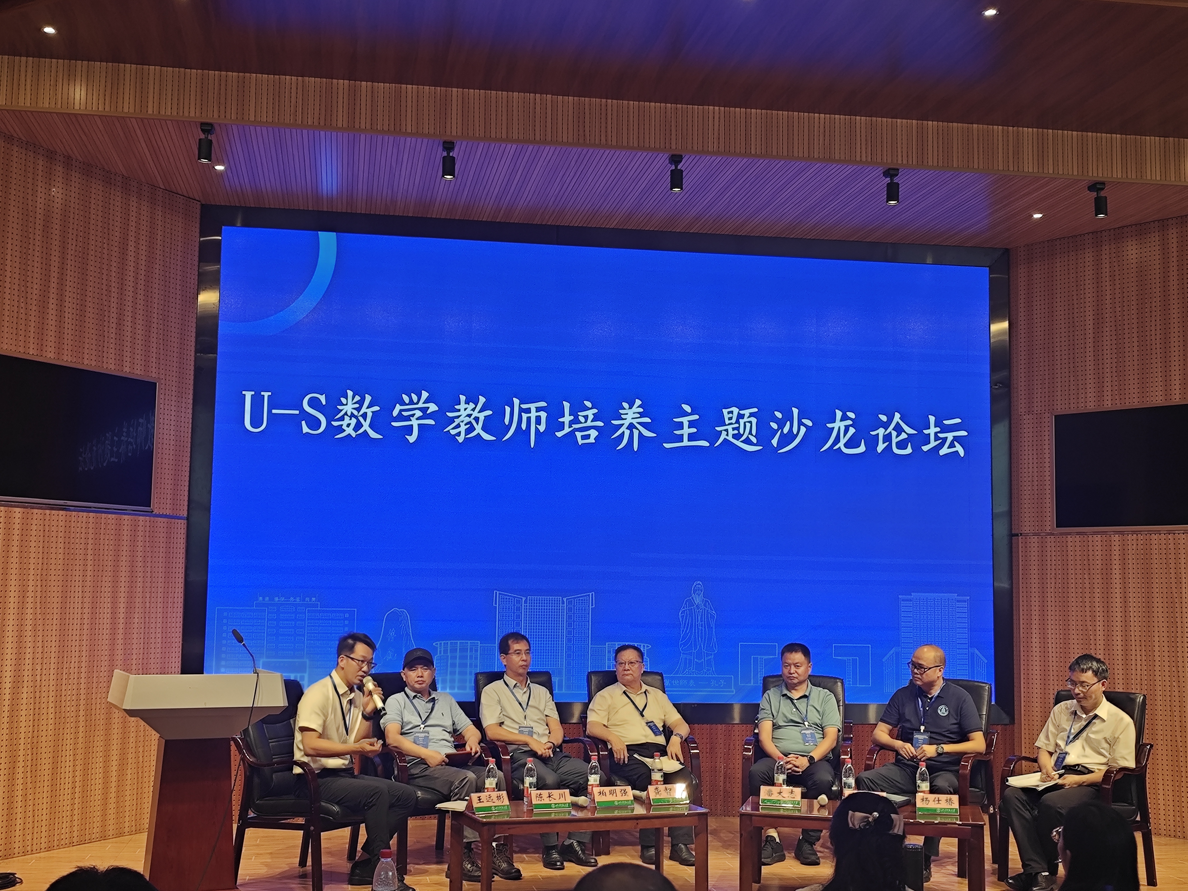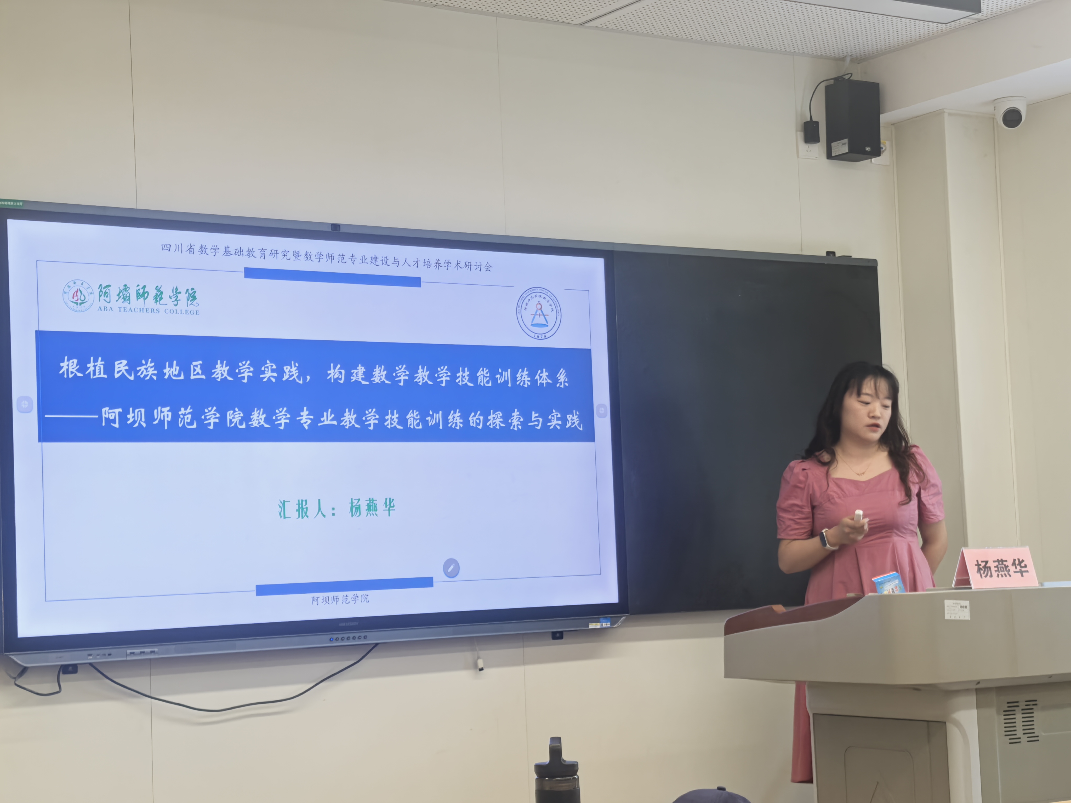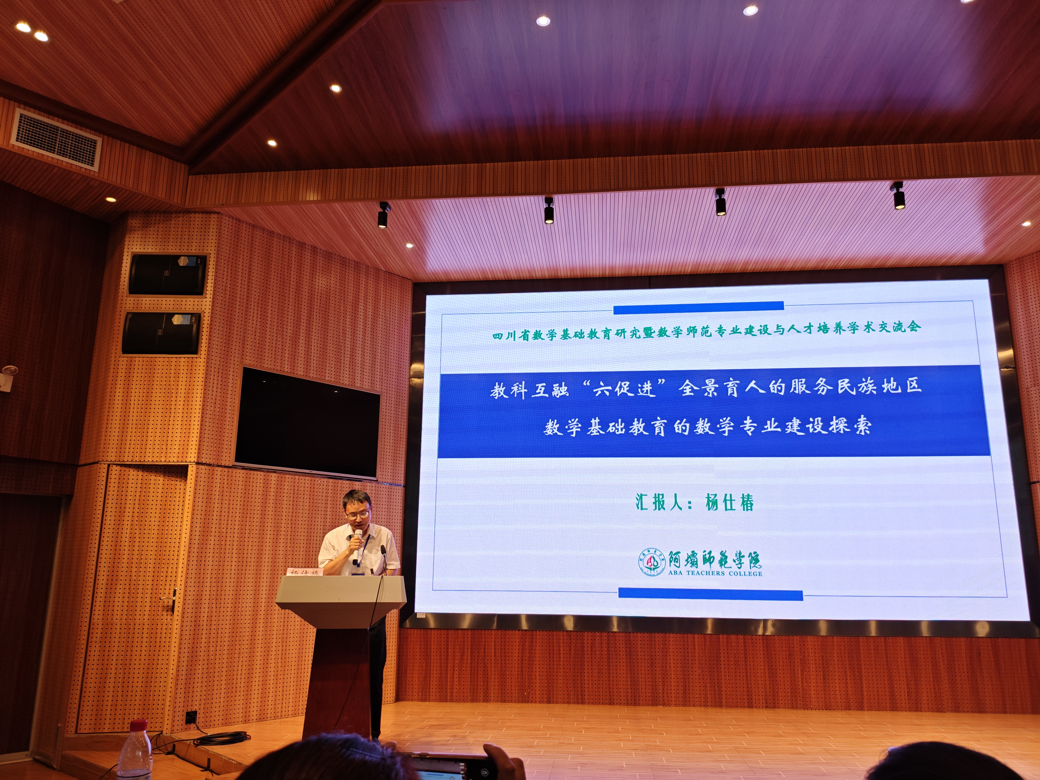 在“高教与师范生培养论坛”中,杨燕华老师作了《根植民族地区教学实践,构建数学教学技能训练体系——阿坝师范学院数学学院教学技能训练的探索与实》的报告,对我院数学与应用数学专业的教学技能训练体系建设作了汇报。在“数学师范专业建设论坛”中,杨仕椿老师作了《教科互融“六促进”全景育人的服务民族地区数学基础教育的数学专业建设探索》的报告,介绍了我院数学与应用数学专业建设探索情况。杨仕椿老师作为嘉宾,参加了U-S数学教师培养主题沙龙论坛。蒋自国老师主持了“数学师范专业建设论坛”的一部分报告。