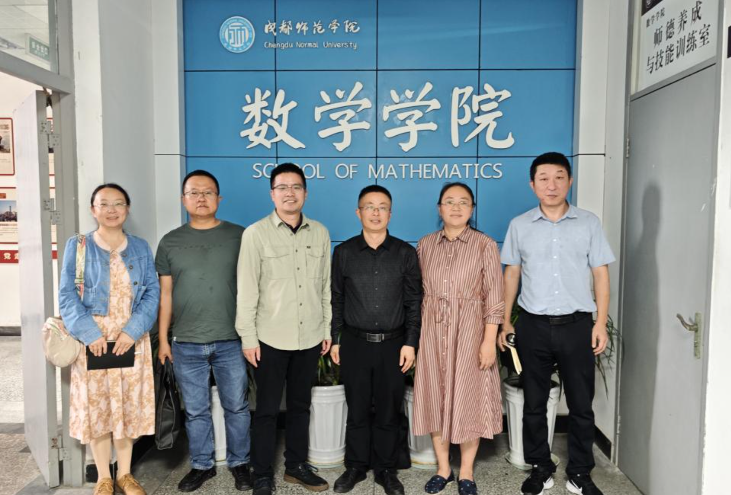 【本网讯】2025年10月10日,我院党委书记蒋自国、副院长何波、蒲永燕、教科办主任蔡尚媛一行四人赴成都师范学院数学学院进行调研交流,旨在学习借鉴兄弟院校在学科建设、人才培养等方面的先进经验,共商合作发展。
