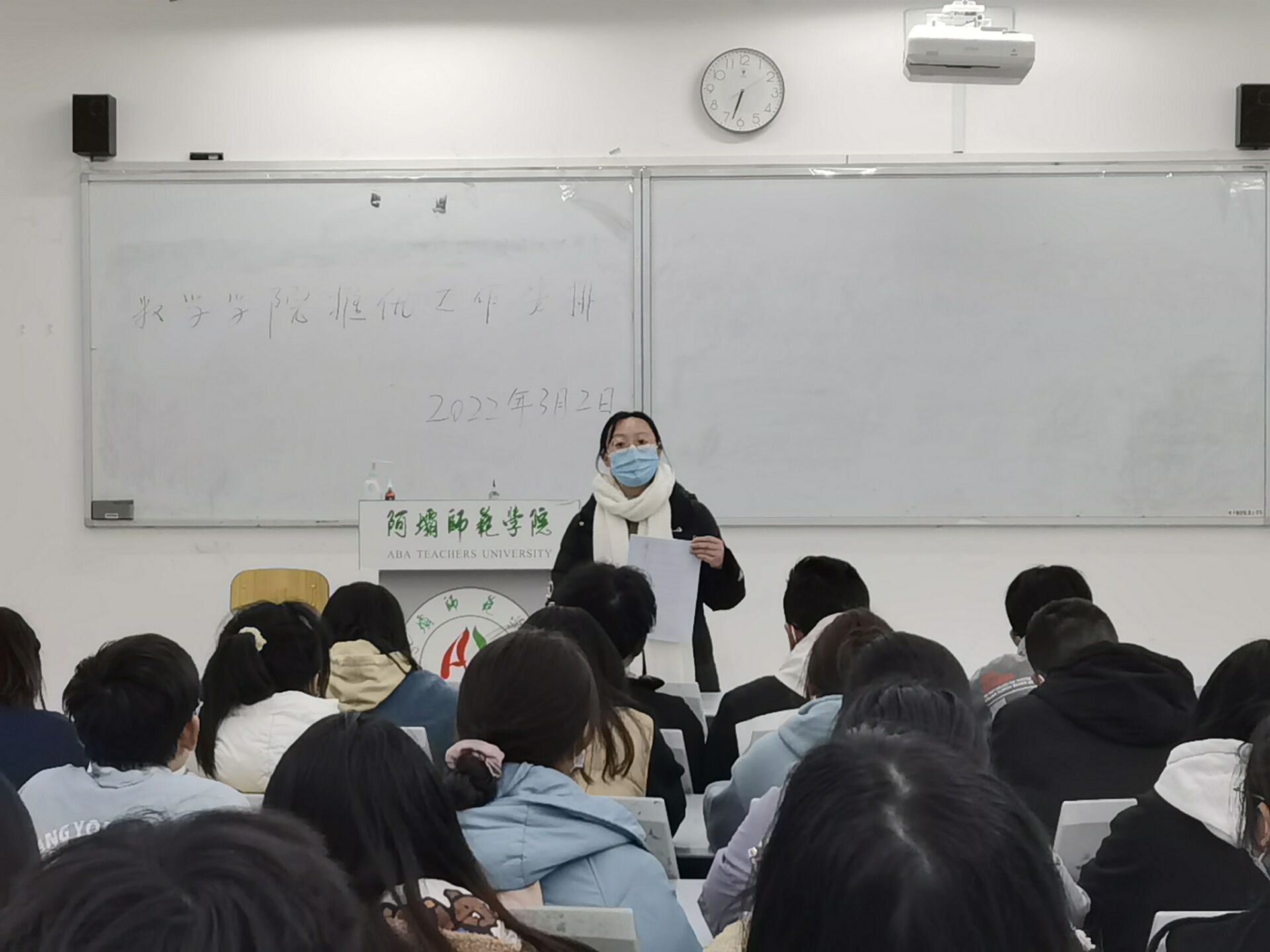 【本网讯】2022年3月2日18:30,数学学院于树人楼C101举行关于2022年春季学期推优工作布置会。参会人员为我院2021级、2020级、2019级各班团支书、宣传委员、组织委员、二级学院团委副书记、组织部、宣传部、预备党员。本次会议由辅导员金玉洁老师主持。