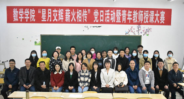 【本网讯】2022年3月23日14:00,我院于树人楼F103开展“星月交辉 薪火相传”党日活动暨青年教师授课大赛,我院青年教师王慧娟、肖雪莲等8位老师参赛,本次比赛邀请夏冰老师、董彪老师、杨仕椿老师、蒋自国老师、何波老师、郑慧老师、吴莉老师作为评委,本次大赛由学生党员代表潘文哲同学主持,全体党员学生观摩比赛活动,皆在向老师们学习教学经验。