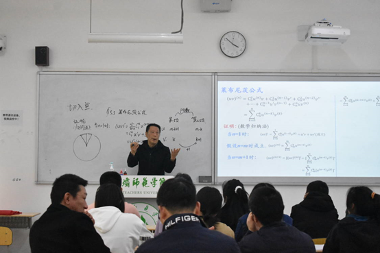 最后,夏冰老师结合自己多年的教学经验,为师生们讲授了一节示范课,他指出,一堂好的课要忠于课标,注重教学评一致性,要渗透学科素养、升华核心价值,以学生为本,以师生互动、生生互动为导向,使学生在教学过程中的主体地位得到充分发挥。夏冰老师作为一名老党员,他对党员教师和学生提出,在如今党的新的要求和形势下如何发挥模范带头作用,尽到自己的岗位责任,在切切实实的工作和学习中不断提高党性觉悟。夏冰老师语言虽朴素亲切,但极为真诚有力,他对党的坚定信仰和对工作的奉献热爱精神打动了所有的教师和学生。