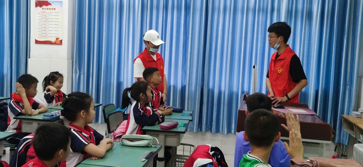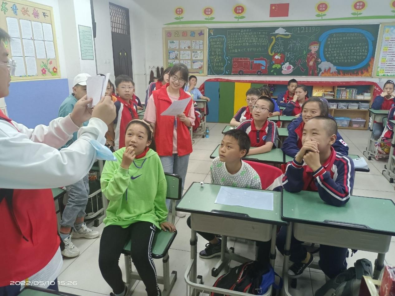 【本网讯】数学学院于2022年5月11日前往漩口小学进行以“实践探索,点亮科学”为主题的科普实践活动。本次活动由樊丽梅老师指导,我院2021级3班16名同学参加。本次社会实践小组由饮食安全组、防火灾组、防溺水组、推普组构成。