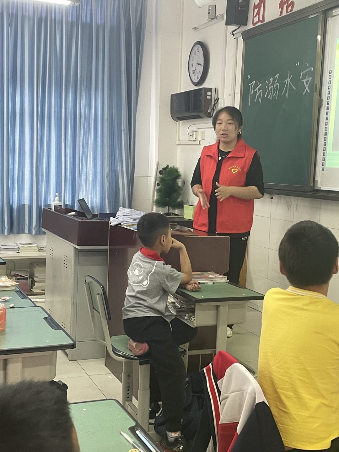 【图三】向同学们讲解预防溺水的知识