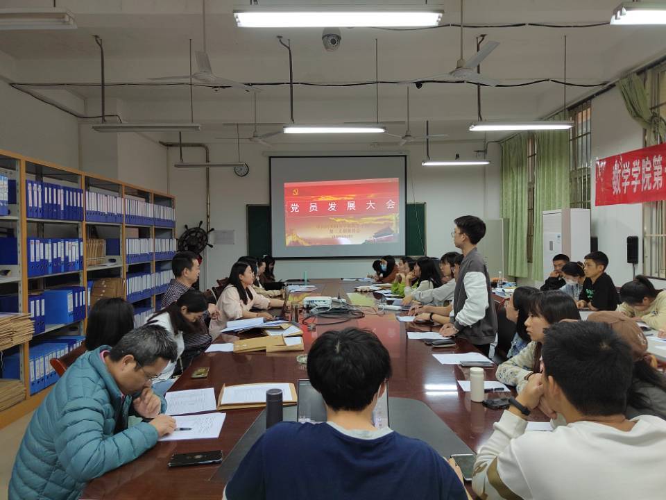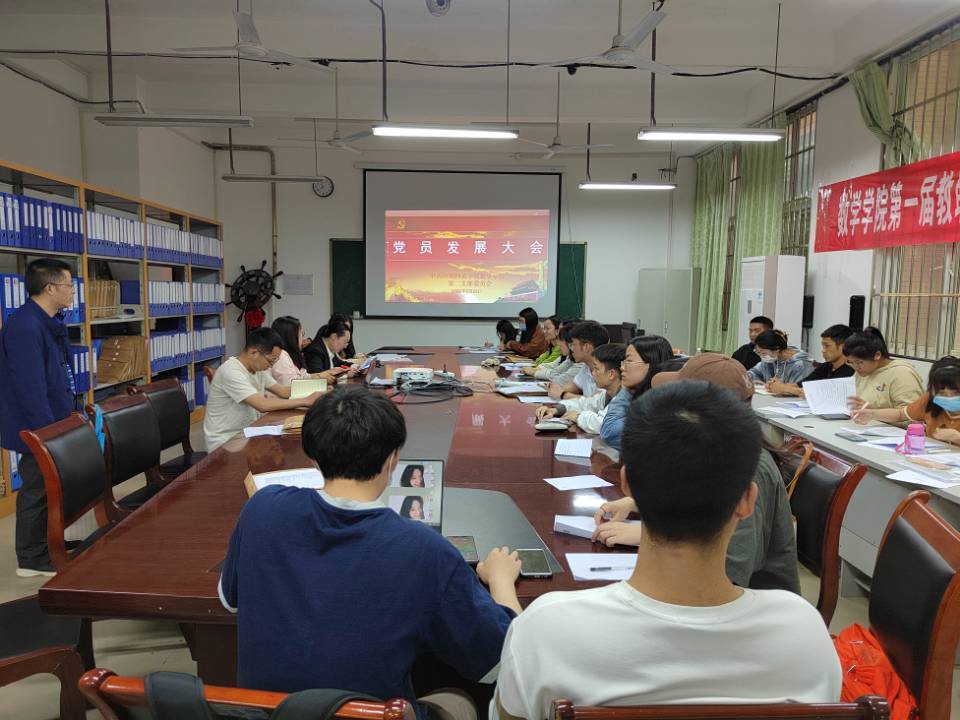 【本网讯】2022年5月25日13:00,数学学院第二党支部在实验楼B113会议室召开数学学院2022年上半年的党员发展大会。出席本次会议的有第一党支部夏冰、董彪、赵伟同志,以及第二党支部全体正式党员以及预备党员。学院党委书记蒋自国同志到会指导,第二党支部书记金玉洁老师主持了本次会议。