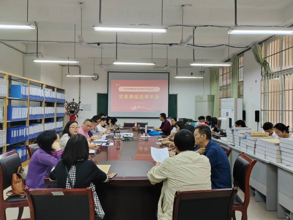 【本网讯】2022年9月21日中午13:00,中共阿坝师范学院数学学院委员会换届选举大会在会议室B113顺利召开,大会圆满完成各项议程,选举产生了新一届党委委员。大会由组织员金玉洁同志主持,学院党委书记蒋自国代表本届党委作工作报告,全体党员参加了大会。