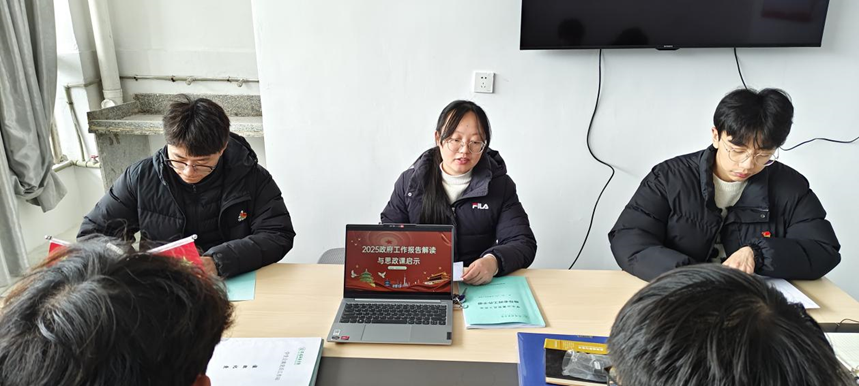 【本网讯】为深入学习贯彻两会精神,统一思想、凝聚共识、指导实践,3月14日12点,数学学院六栋党员工作站组织党员和入党积极分子学习2025年全国两会精神。数学学院第二党支部书记金玉洁老师出席本次活动。