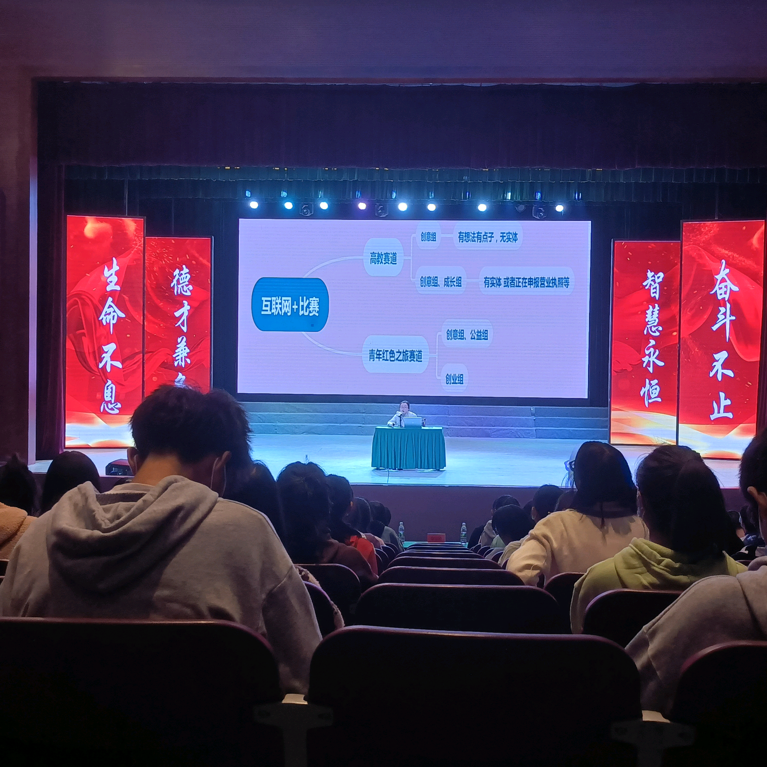【本网讯】2022年10月21日13∶00,我院在南苑剧场开展创新创业知识讲座,由学院学生会组织,缪文钰、董文祺主持,我院党政办主任谷琳琳老师主讲,辅导员樊丽梅、王全智和2022级全体新生参加了此次活动。