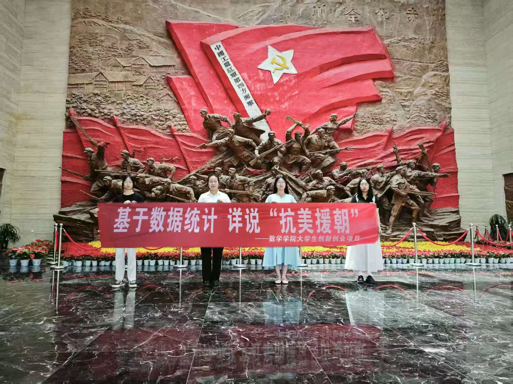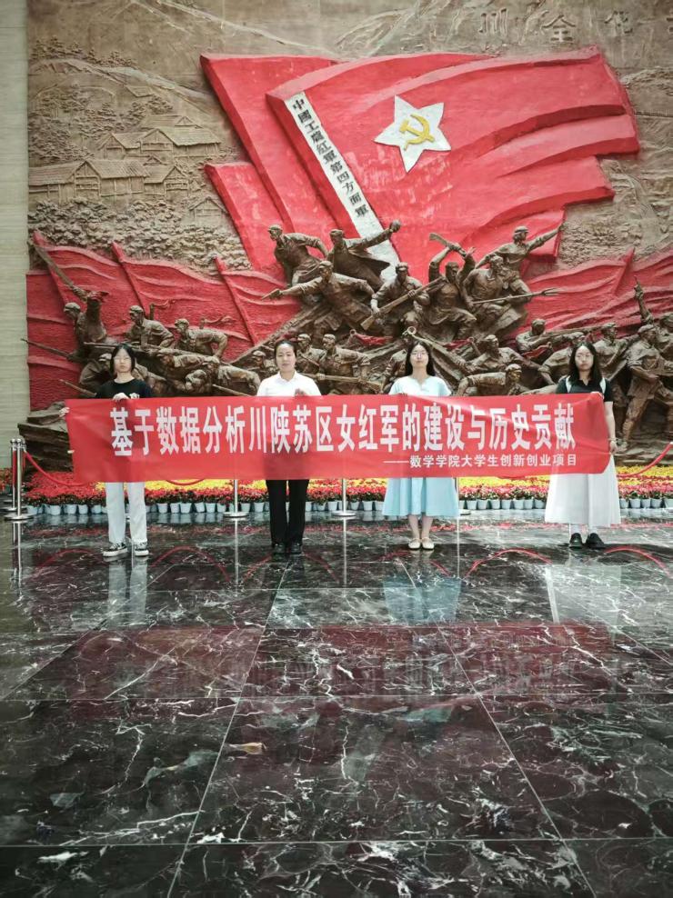 【本网讯】2025年5月7日-9日数学学院大学生创新创业项目《基于数据分析川陕苏区女红军的建设与历史贡献》、《基于数据统计详说抗美援朝》项目在巴中市、通江县进行了调研查,问卷调查关于“对川陕苏区女红军的了解程度”,项目成员对巴中革命老区进行调研,在调研过程中收获了很多资料,项目成员马苏兰同学说在详细了解了川陕革命根据地历史,在读到一个个女红军的故事时,在走进川陕革命根据地博物馆,在触摸到女红军的塑像时心情很激动。
