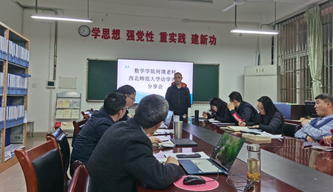 分享会上,何璞老师首先介绍了西北师范大学的校园文化和学术氛围。他提到,西北师范大学作为一所历史悠久的师范类院校,拥有深厚的学术积淀和丰富的教学资源。在访学期间,他深入参与了该校的数学教学活动和学术交流活动,与众多专家学者进行了深入的探讨和交流。