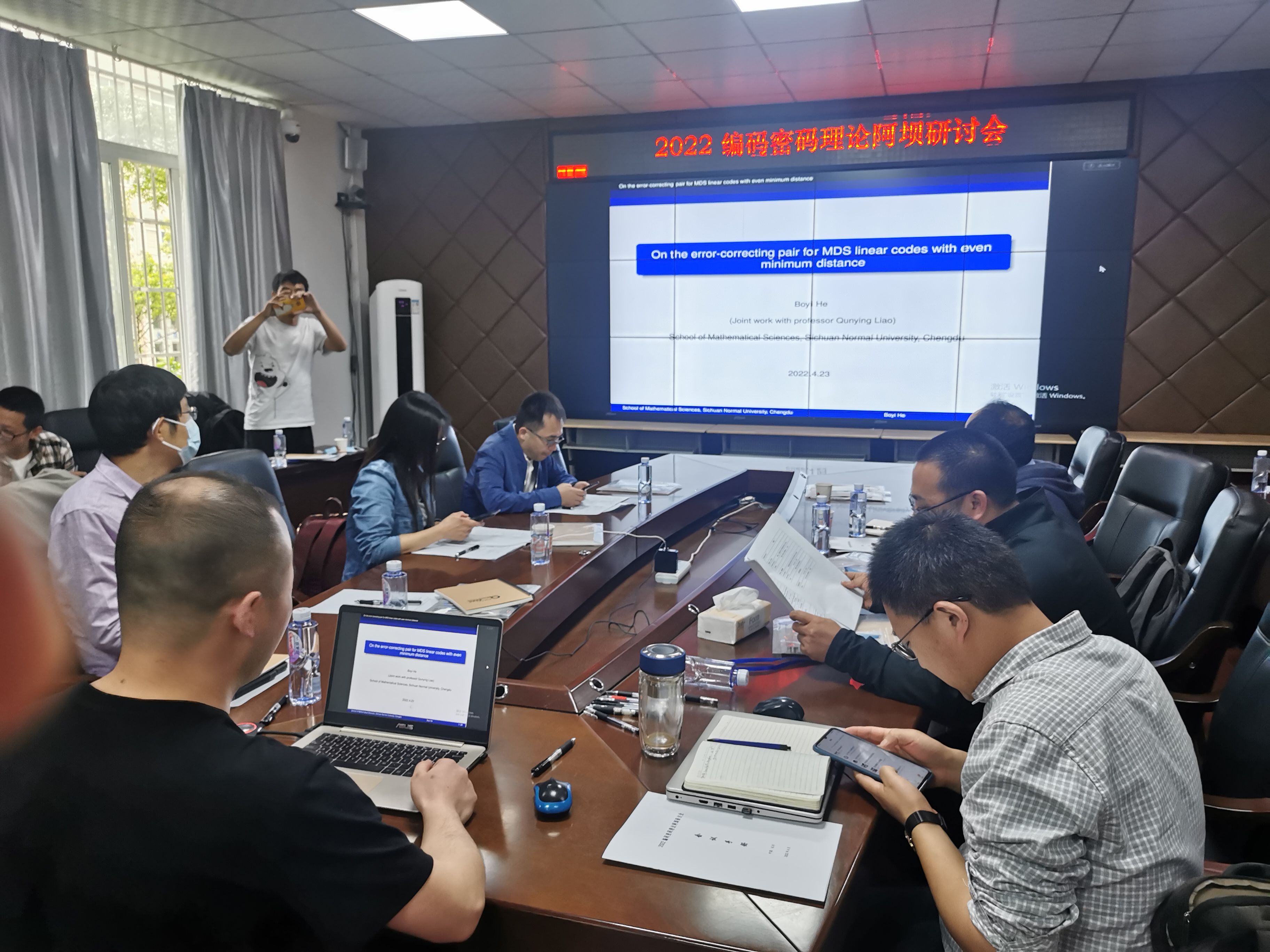 本次会议主要以学术报告与现场交流、讨论的方式进行。周正春教授作了《Low/Zero Ambiguity Zone: Theoretical Bounds and Doppler-Resilient Sequence Design in Integrated Sensing and Communication Systems》的学术报告,朱灿泽博士作了《Self-dual twisted generalized Reed-Solomon codes》的学术报告,唐春明教授作了《Narrow-Sense Antiprimitive BCH Codes Admitting 3-Transitive Automorphism Groups》的学术报告,李雁彬博士作了《素数Level的权2模形式的傅立叶系数》的学术报告,聂旭云博士作了《多变量公钥密码研究进展》的学术报告,罗荣博士作了《两类三元最优循环码》的学术报告,何博祎博士作了《On the error-correcting pair for MDS linear codes with even minimum distance》的学术报告,李小平博士作了《Euclidean Algorithm Based Approach to Coprime Pairs of Matrices》的学术报告。