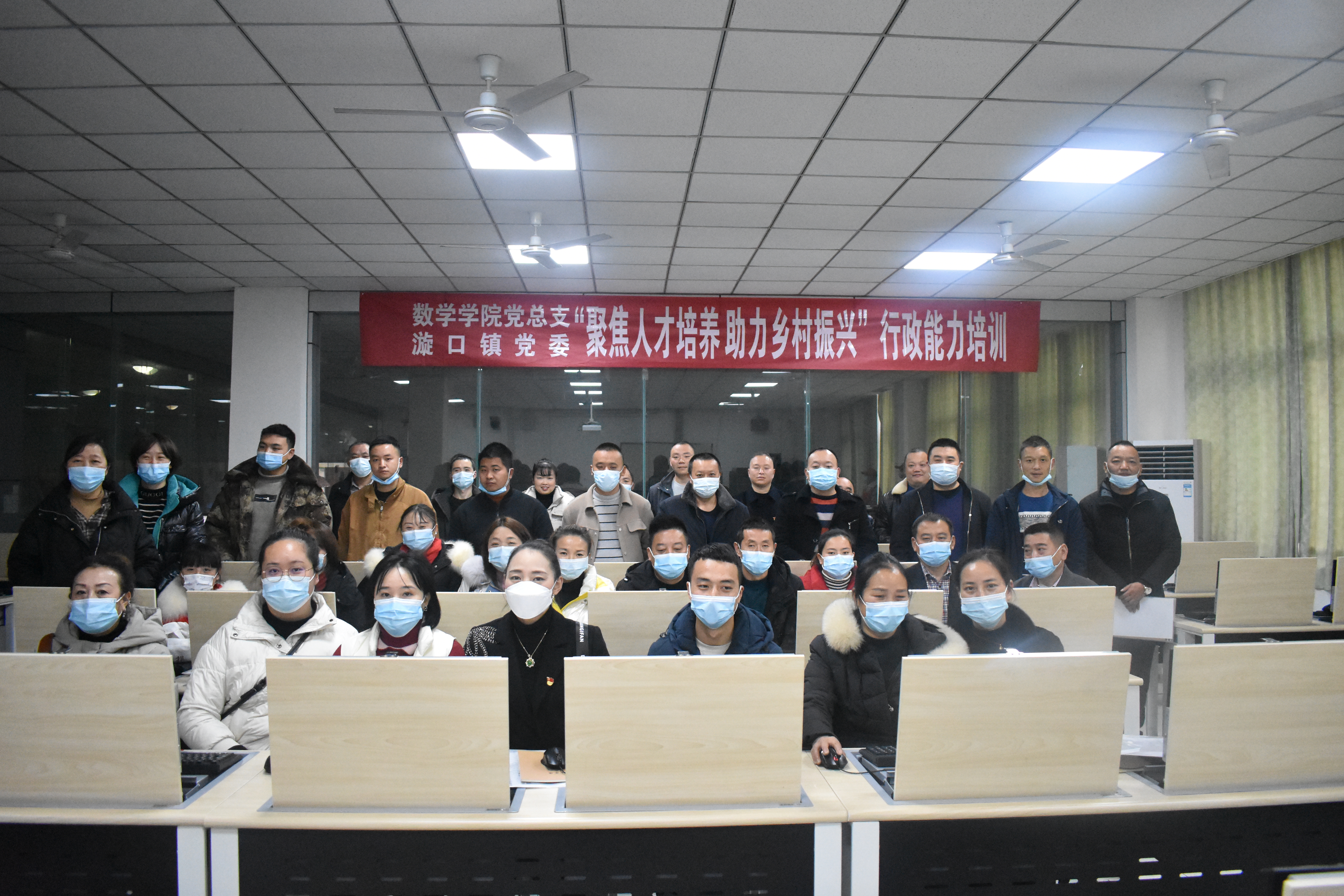 【本网讯】2021年11月27日,为进一步培养村工作人员的计算机基本操作能力,提升村干部工作能力,数学学院于实验楼B116开展“聚焦人才培养助力乡村振兴”行政能力培训活动。李唐辉授课,漩口镇村干部听讲。