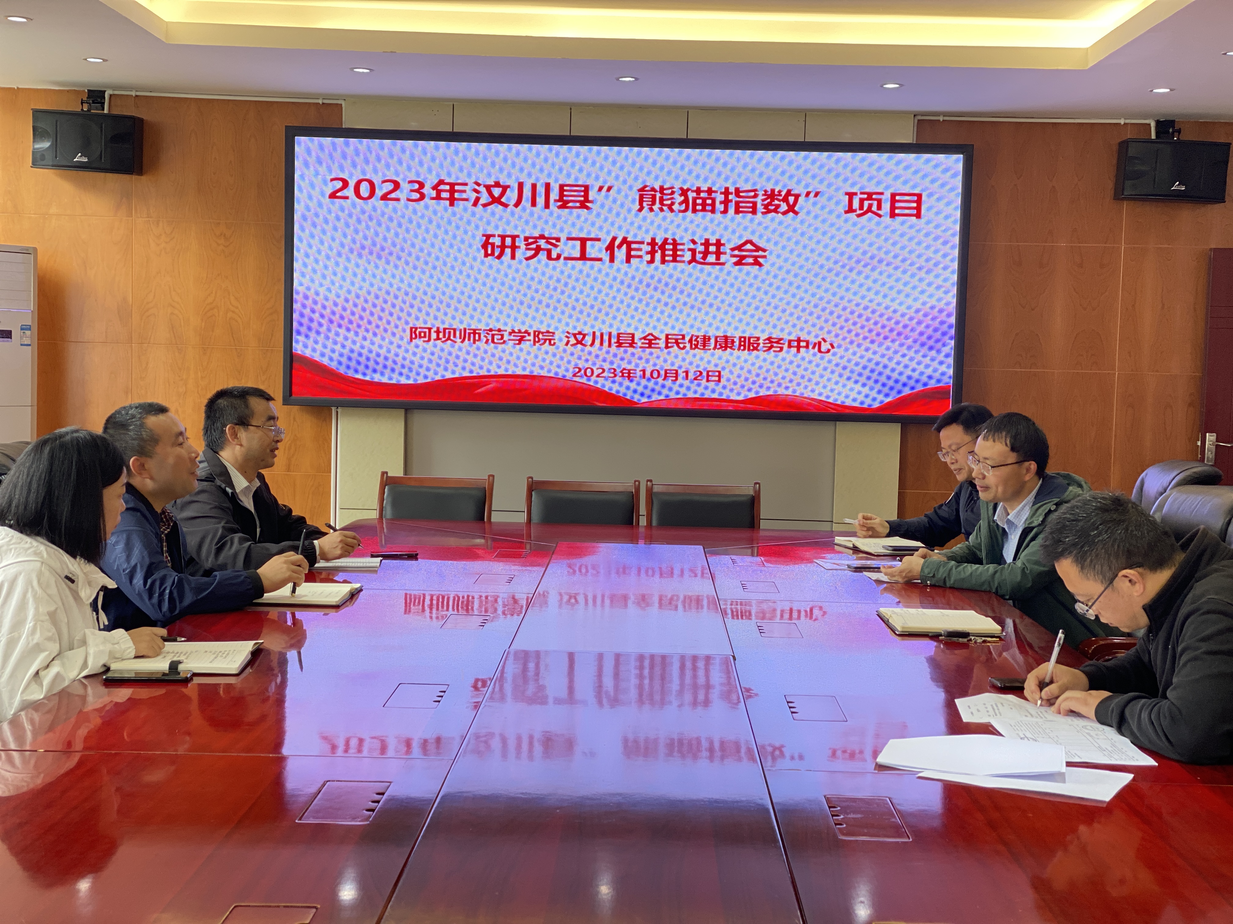 【本网讯】2023年10月12日上午,汶川县熊猫指数研究团队在学校行政楼402会议室举行2023年汶川县熊猫指数研究项目研究工作推进,汶川全民健康服务中心主任陈波、科长廖辉、工作人员文静等人,以及阿坝师范学院研究成员蒋自国、罗南超、刘汉文、杨仕椿、向昌成等参加了研讨活动。